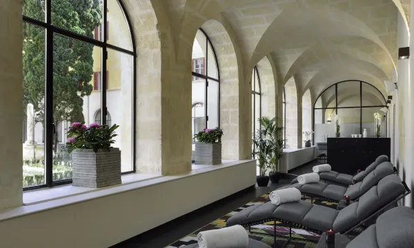 The Jules César hotel & Spa in Arles was completely renovated and decorated by Christian Lacroix in 2014.Located in the Arles city center,you will experience true 5-star comfort. Formerly a 17th century Carmelitas convent this hotel offers 52 rooms, inclu ding 11 suites, a gourmet restaurant with terrace,outdoor heated pool close to the cloister gardens (open seasonally) and a registered CINQ MONDES spa.Arles is an ideal layover stop with its Roman architecture classified by UNESCO as a World Heritage sit