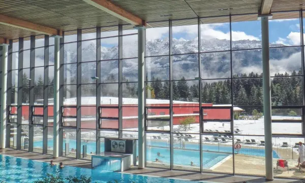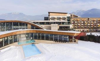 On 26247 ft², the directly connected Grimming Therme offers a vast variety for wellness and relaxation. It features 3 outdoor and 6 indoor saunas, a relaxation room with panoramic mountain view and 11 wellness-treatment rooms designed according to the 5 elements. Additionally the Grimming Therme features 6 indoor and outdoor pools with separate areas for children and young adults.