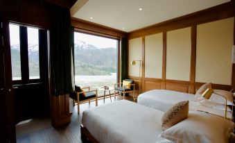 相比波密松贊,來古松贊無論是體量還是房間大小都要比前者小,但景觀毫不遜色,依然是神仙選址。酒店座落在來古冰川景區內、海拔4200米處,鑲嵌在懸崖上,面朝冰川,置身雪山湖,從房間就可以遠眺雅隆冰川!一進門客服就會送上全新的布鞋,還提供免費清潔鞋子的服務。酒店在景區內,入住送門票且可以自駕前往冰川入口,很是方便。客房彌散式供氧、地暖、加濕器,一應俱全,床品舒服。考慮到供氧安全問題,房間還設計了小小吸煙室,細節滿分。
