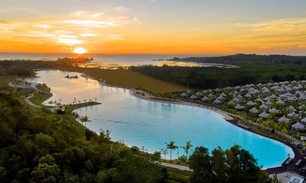 Escape on a family-friendly glamping vacation at Natra Bintan, A Tribute Portfolio Resort. Overlooking the stunning Crystal Lagoon Southeast Asia’s first and largest man-made seawater lagoon on Bintan Island, Indonesia. Our Bintan Island family resort is also ideal for groups and corporate events. Indoor and outdoor venues are available, with every space supported by delicious catering. The lush resort grounds host safari-inspired tents with private patios boasting garden or lagoon views. Every glamping accommodation feature king-sized beds, LED TVs, mini-refrigerators, sofa beds, outdoor rainforest showers, free Wi-Fi, and air conditioning. Indulge in delicious cuisine or sunset cocktails overlooking the lagoon at The Patio Restaurant and Bar, or arrange a barbecue on your tent patio. Explore nature with a guided private mangrove tour, enjoy a round of golf at Bintan Golf Club, or capture stunning moments at the Sand Dune.