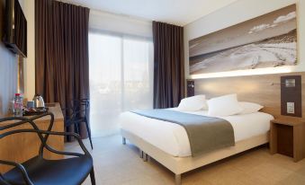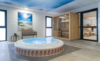 Set off for a trip to the Normandy coast and book a comfortable room in our 3-star Hotel Kyriad Prestige Résidence Cabourg – Dives sur Mer. This welcoming hotel is located 5 mins from the SNCF station and the magnificent fine sandy beach at Cabourg. It is equipped with a well-being area with unlimited access, with a swimming pool and jacuzzi.