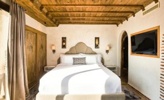 I stayed two nights at this wonderful hotel/riad. The grounds are so lovely with a garden and patio with a relaxing fountain and lovely, cool, refreshing pool with comfortable lounge chairs. My room was #15 with a fantastic view of the town and sunset. The room was spotless. Comfortable bed, large bathroom, small patio, easy-to-use safe. They provided two bottles of water in the fridge daily. Breakfasts were delicious with optional omelet presented in a cast iron skillet. Selection of breads, pastries, juices, etc. I had dinner twice in the restaurant, especially loving the mojito and seafood cassoulet. The staff were gracious and attentive, always tending to make sure my stay was satisfying. The only downside had nothing to do with the hotel. The neighborhood is quite noisy on Saturday night. There was loud music and fireworks until midnight. The next night was quiet with the exception of howling dogs. Otherwise, a very peaceful, restful spot.