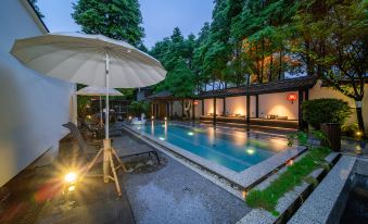 這是一家很有特色的酒店,每個房間都有私湯池,每天下午五點後都能讓管家放水,水很大很快就放好了,水温剛好,還貼心的送了中草葯的瑤浴包,出去走了一天泡泡剛好可以解乏。公共區也有幾個小池和一個游泳池,小朋友在那玩水很開心。
