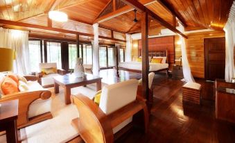 Design and Amenities: The estate is beautifully designed, with stylish interiors, curated artwork, and spacious rooms featuring unique decor and large bathrooms. The infinity pool is a standout feature, providing spectacular jungle views.