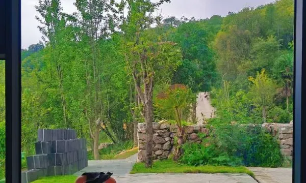 ▪️設計很有調性,灰瓦白牆搭配大玻璃現代簡約+藝術庭院(老闆自己説是荒野之美)完美地嵌入自然山野美景中,能看出老闆的品味;