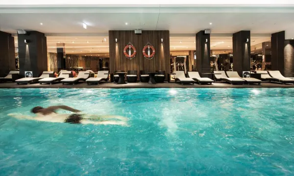 Bardzo komfortowy hotel, przestronne wygodne pokoje, miła pomocna obsługa, ogromna sala zabaw z dużą ilością atrakcji, spora siłownia z dużą ilością półprofesjonalnych maszyn, brodzik, duże jacuzzi z chlorowaną wodą i sporej wielkości basen o głębokości 180 cm ze słoną wodą (trochę za głeboki). Kuchnia raczej smaczna, ale część dań jakby słabo doprawiona, dodatkowo dania kuchni tajskiej, smaczne ciasta. W TV m in. Canal + i HBO. Hotel od jeziora oddziela tylko deptak, przydałaby się na lato chociaż mała żwirowa plaża