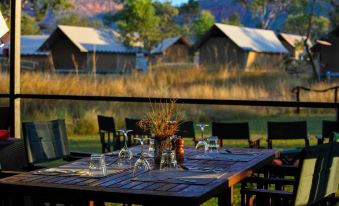 This camp is run by a major travel compagnie APT, so there are a lot of travellers arriving by bus in groups Yet, as independent travellers , we were positively surprised by this place Bus travellers and the independent people, were on different tables Friendly staff, good food and a relaxed atmosphere Bungalow tent was spacious, clean and had an ensuite Outside deck Remark. Staff started cleaning table and restaurant, while people were still at there table, is seemed the wanted you out the restaurant asap