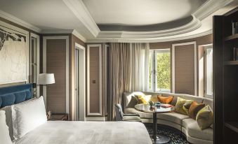 Accommodations include 15 guestrooms plus 39 suites - each reflecting the charm of this historic luxury hotel. Views are of the street - city or park. Sumptuous bedding includes one queen or one king or two twin beds with luxury linens and plush duvets. Marble bathrooms are appointed with a shower over the bathtub -or a separate bathtub and shower cabin. Some have a WC separate from the washroom. Room amenities include complimentary high/speed wireless Internet access - a premium audio system - an iPod dock plus an LED widescreen TV with high-definition cable and premium channels. Some rooms have hardwood floors. Several suites are equipped with fireplaces. The hotel has a spacious seven bedroom penthouse floor - a Royal Suite - a private entrance for VIP guests and suites with balconies overlooking the gardens.