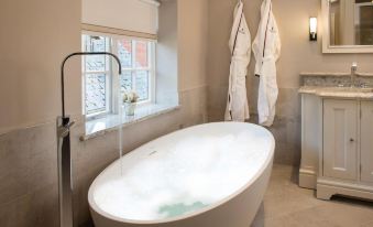 Lovely property in the countryside- close enough to Heathrow, if you need it. The property has a golf course, offers memberships, and is great for families- with 2 restaurants, and the charming Manor House Lounge, plus Flo’s- a casual eatery great for kids, in the membership pool complex - (both indoor and outdoor). Plus, a lovely Spa, which includes a warm indoor swimming pool, steam room, sauna, outdoor, natural plunge pool and an open air jacuzzi, with sunbeds in the garden. Hotel guests also have access to the pretty, outdoor residents pool. The best thing, is that the pools are warm! Unlike so many hotels! Perfect for swimming! The rooms have all been redone, and are beautiful, elegant and with all amenities, except air conditioning- rarely needed in Britain. I stayed in two types of rooms, the first- the ex stables- single suites being on the ground floor, with tables, chairs and sun beds on the lovely lawn outside. Very nice- but I do suggest adding fogged film to the bottom portion of the bathroom windows, as they look out in the courtyard. This area also has two storied family suites. The next visit, I was in the Lyme House, on the second floor- (an elevator is in this building.) Also, beautiful, well appointed rooms. The restaurant is very pretty, and the food good, but the service is the standout- the friendliest, nicest staff! The front office is wonderful too- Louis, greeting everyone and so helpful and friendly, and the ladies at reception- I must mention Liberty, as she went above and beyond assisting me with any requests and queries. Even when I arrived- and sadly, the taxi driver from Southampton, had been awful, telling me he had several friends that liked dating women my age- (what?)- then tried to overcharge me by $50.00. Liberty and Lewis came to my aid. The one thing that caused great and incessant problems, was the lack of a phone- the iPad provided- is time consuming, not comprehensive, makes mistakes- (my room service meal was listed as being for the room next door!) and calls drop constantly. I was forced to use the “Teams” app, which links to my old Skype account, to call, which calls also dropped. Coming from the US, if I had just called directly, I would have easily racked up over a hundred dollars worth of International charges. At one point- with a question about my bill, where we got disconnected again, Liberty, from reception actually ran over to my room, rather than call me back- much appreciated, as the call would have wasted many dollars. There is an electrical outlet switch in the closet, that turns on the bathroom heated towel rack- they need to let us know where that is- as I had to ask staff- wasting their time and mine. Also, they need to provide luggage racks in all the rooms, otherwise guests have no choice but to open their often dirty, wet, muddy luggage on the clean, white bedding- a nightmare for staff, and a huge waste of laundry, time, power, water etc. Also, please do not perform maintenance on