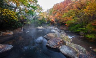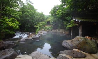 Номер в японском стиле с татами и традиционным интерьером. Отдельно комната с термопотом, можно заварить чай. Окна выходили во двор, с видом на ветки клёна. Очень красиво. Ужин был кайсеки, смена блюд постепенная, итого 9 разных видов тарелок (особенно понравилась речная рыба запечённая на углях, сашими и стейк из говядины) . Порции достаточно большие. Завтрак также был прекрасен. Персонал приветливый, нас знакомил с отелем парень, который узнав откуда мы, сказал, что очень любит Чайковского и добавил "спасибо" . На территории отеля есть магазин с сувенирами. Купальни есть внутри помещения и на улице, с видом на реку и лес.