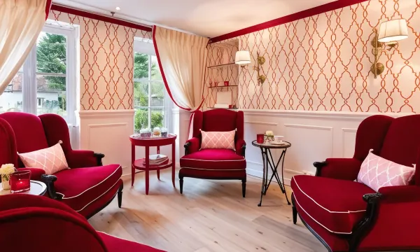 We stayed at this wonderful hotel for three nights. We stayed in the main building in a beautiful yet very modern and functional room. Beware: It was on the second floor, with a narrow spiral staircase and no elevator. But no problem: The reception staff are extremely helpful, with a special mention to Marceau. He was always in a good mood and helped with all our questions and requests. We had dinner in the bistro all three evenings. On Monday and Tuesday it was a fantastic experience, with great food and excellent service. On the third day, a different, much smaller team was in charge; there's still a lot of room for improvement in service here. Also worth mentioning is the entire complex with large meadows, a pond with swans, plenty of outside seatings, and a huge forest area. Overall, a fantastic stay.
