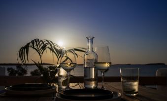 The exterior space (gardens, pool, bar area and overall layout) is beautifully designed and offers a fantastic view onto the Aegean sea. When you stay at this hotel this is basically what you are paying for because the interior space is extremely minimalistic. This outside space offers a great backdrop for events. The hotel offers great breakfast- especially the fresh breads are excellent. You can order any kind of eggs, there are freshly pressed fruit juices, coffee or tea, selection of cheeses, fruits and vegetables, different spreads, yogurts, porridge. We just have not seen any meat there during our stay. The employees at the breakfast bar & the manager of the hotel are very nice individuals, providing tips about where to go or what to visit, where to eat, helping to arrange for a car rental etc. The hotel strives to be plastic free (though the gardeners use plastic bags...) and filters the waste water to reuse it to water the garden. The owners of this hotel are non-Greek and this hotel is a pure business. They have engaged a local Greek manager to handle their investment and manage this hotel for them. While we were staying at the hotel they were present the first morning and had some "self glorification" going on at breakfast. They never even said good morning to us or welcomed us. Instead, it felt like they were celebrating themselves before leaving for the winter, speaking very loud to ensure everyone heard their conversation. What was worse is that the woman of the couple mocked a certain culture and complained and stereotyped about another one. Zero consideration with regards to which guests could be present at her hotel. With this she managed to insult us within the first 5 minutes of our first day there. The inside of the room is very minimalistic. Which in itself is not an issue, but the way this is done at this hotel does not portray any luxury which you expect based on the price range and in comparison to other hotels. Everything is poured concrete that is then simply painted (including the sink, shower, bed frame etc.). The bed is very difficult to get out of (especially during the night you need to be very careful not to fall) because its simply a mattress that is very low to the ground so you cannot sit up properly. The room is kept in dark tones (grey, brown, black), the toilet is black. Together with the poor lighting this does not allow you to properly see how clean or dirty everything is. The hotel advertises itself as "beachfront". However, it is not actually located on a sandy beach. It is "waterfront" with a rocky wall between the property and the sea. It has direct access to the sea via a dock and also a staircase.