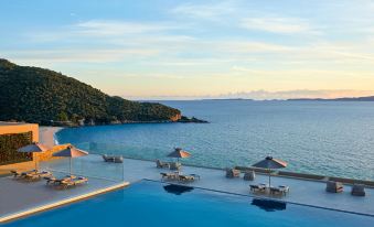 Location and Views: The hotel is situated on a hill overlooking the sea, offering breathtaking views and a stunning beach experience. Guests frequently mention the beautiful surroundings, especially the sunsets and panoramic views from different areas of the hotel.