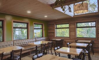 Fuimos a almorzar al restaurant del hotel (no estábamos alojados en el hotel). El entorno es muy bonito, cerca pasa un río. Sin embargo, la atención del restaurant y la calidad de los platos fue macabro. Hubo que esperar más de hora y media por lo platos de fondo, no eran muchas mesas tampoco. Hasta para tomar el pedido y retirar el servicio era todo lento. Y cuando llegaron los platos, la carne venía reseca... En fin, pésima experiencia. Es urgente una intervención mayor, desde la mesera (había sólo una cuando llegamos), hasta la calidad de la cocina. Como excusa nos dijeron "es que llegaron varias mesas", como si fuera un problema para un restaurant. A la administradora le falta manejar mejor todo el proceso.