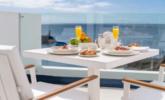 The Royal Marina Suites in Puerto Calero, Lanzarote is a unique, adult only, boutique hotel which I would highly recommend to the discerning guest. The 26 suites, all of which have magnificent sea views over the entrance to the marina, are luxuriously appointed. The bathroom/wet rooms are spacious and well equipped and the large private terraces have their own sun beds, table and chairs. There is no need to get up at dawn to put your towel out to reserve a sun bed by the pool as there are ample top quality, upholstered sun beds and sun shades for everyone. Breakfast is a pleasure, with an excellent choice of cooked dishes served at your table as well as a buffet with a copious selection of cereals, fruits meat, cheeses and breads. The Suites are primarily bed and breakfast but it is only a short stroll along along the paved coastal path to the Puerto Calero Marina with an abundance of good restaurants and bars for an evening out. This is an exceptional, privately run, little haven in a fantastic position with extremely friendly and helpful staff.