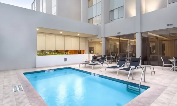 An unparalleled stay awaits at Courtyard Saltillo. Our modern hotel positions you minutes from dynamic destinations. Easily access the downtown area, Galerias Saltillo mall, GM Ramos Arizpe Assembly and Museum of the Desert. Experience the ultimate relaxation in our stylish rooms and suites. We provide complimentary Wi-Fi, room service and plush bedding for your convenient travels. Upgrade to our suites to receive extra space and grocery shopping services. Satisfy your hunger at our on-site restaurant. Centro serves delicious American cuisine along with Starbucks® coffee and handcrafted cocktails. If you are in need of some quick snacks and beverages, stop by The Market. To burn some calories, swim laps in our outdoor pool and break a sweat in our fitness center. Need to host an event. We offer two versatile event spaces perfect for business meetings and social gatherings. Whether you are in need of a laid-back getaway or productive corporate trip, travel confidently at Courtyard Saltillo.