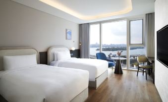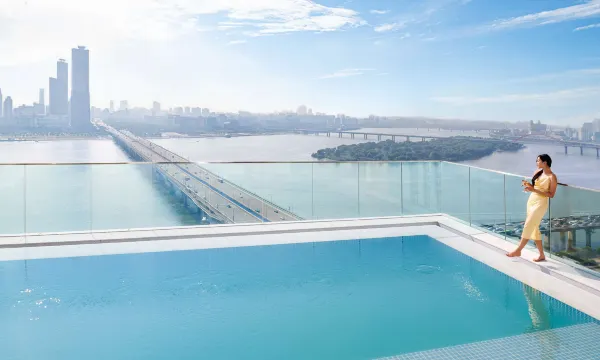 Featuring 196 guestrooms, the hotel is built sustainably. The tranquility of the rooms with their modern design, as well as the infinity pool and indoor swimming pool, the creative French dining restaurant and lounge bar, along with the contemporary art pieces, will enchant guests. From our 20th-floor lobby, take in the serene poetry of the softly glowing Han River and the lush Bamseom under the tranquil night sky, a gift of nature's calm. Welcome to Hotel Naru Seoul - MGallery.