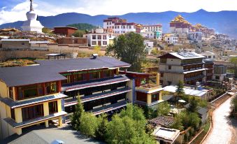 The Songtsam Hotel (Xianggelila Songzan Lvgu Jiudian) is a Tibetan-style hotel with a good location in Shangri-La sitting next door to Ganden Sumtseling Monastery, a Tibetan Buddhist monastery. The quiet environment of this Tibetan hotel offers beautiful vistas of lakes, mountains, temples and Tibetan village life.
