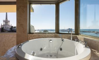 The hotel is located in the very center of Sochi, opposite the Seaport. It is located in a restaurant and hotel complex on the 6th and 7th floors, on the side of the Barceloneta restaurant. The oceanarium "Secrets of the Ocean" is 800 meters away, and the Riviera Park is 1 km away. Sochi Train Station is 1.3 km away, and Sochi International Airport is 23 km away.