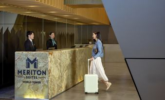 What are the check-in and check-out times at Meriton Suites World Tower?