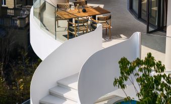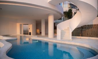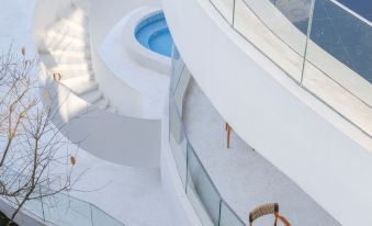 The overall building was created by the team of designers. The exterior of the white landscape, with the perfect combination of Mediterranean resort style and wabi-sabi elements, has the largest crescent shaped swimming pool in Tengchong, changing scenery, flowers and trees, intersect and shine.
