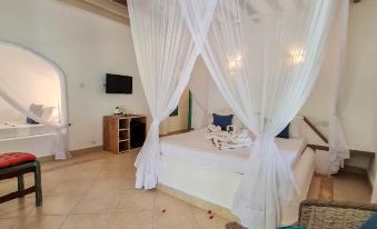 All of the air-conditioned rooms at Temple include a modern bathroom. There are views of the Indian Ocean, Mida Creek or lush tropical gardens from a shared patio or balcony.