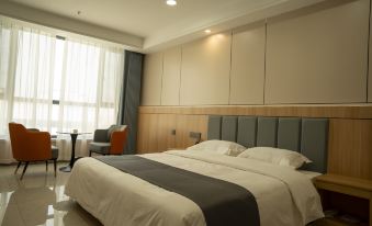 新開的酒店,前台服務熱情,房間大且乾淨。沒有任何煙味和裝修的味道。停車非常方便,有一個巨大的停車場,有許多充電樁,酒店隔壁就是加油站,自駕遊選這裏太合適啦!房間很安靜,床品乾淨整潔,床軟硬適中非常舒適,能睡一個好覺。全屋天貓精靈控制,非常方便。