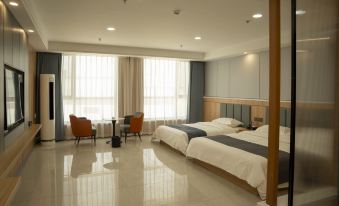 作為酒店從業人員真的很滿意,環境遠超價格,目測一定生意興隆。我們一行定了兩間,另一間標間更大一些,前台一位皮膚白皙丹鳳眼女生服務很好,會主動問去哪裡旅行,並告知注意事項,服務意識超出很多同級別酒店。床墊很舒適,電視可投屏,熱水空調一應俱全,免費停車,寬敞明亮。