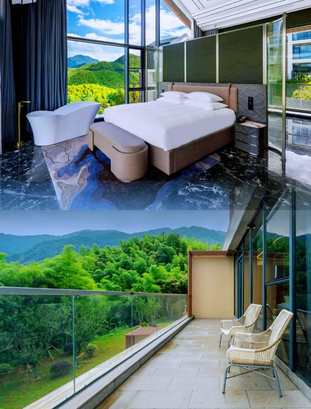 Location: Located at No. 75-3, Gaojiatang Village, Shanchuan Township, Anji, right at the entrance of Yunshang Grassland Scenic Area, about a 2-hour drive from Hangzhou. The hotel is nestled in a mid-mountain bamboo forest, with some buildings by the lakeside, surrounded by lush bamboo and dense trees. It features traditional white walls and gray tiles, perfectly blending architecture with nature in a simple and elegant style that integrates Anji’s natural scenery. There are 202 panoramic rooms, all with floor-to-ceiling windows and viewing terraces overlooking the lake, mountains, and bamboo sea. Unique room types include "Lan Shan Room," "Qing Miao Room," and "Yi Zhu Room." For example, the Qing Miao Twin Room covers 60 square meters with a spacious layout and a large balcony offering a 180° bamboo sea view. The rooms are equipped with high-tech amenities such as Dyson hairdryers, capsule coffee machines, Xiaomi automatic hand washers, smart toilets, electric curtains, and 72-inch large TVs. The bathroom features Kohler fixtures, a dry and wet separation design, double washbasins, a bathtub, and a toilet with constant temperature and automatic sensor flushing. Dining: Offers a variety of dining options including a special buffet breakfast, Wukeshu Japanese cuisine, Korean BBQ, and more. The dry mixed noodles at the Squirrel Tribe buffet breakfast are a must-try. Entertainment: The Squirrel Tribe offers quality family time and close encounters with adorable pets. Yunshang Grassland: A high-altitude resort area over 1000 meters above sea level, cool and refreshing in summer, with snowy views in winter. China’s Great Bamboo Sea: Enjoy the lush bamboo sea covering the mountains. Cliff Swing: A thrilling activity that requires advance queuing. Glass Walkway: Offers a 360° unobstructed panoramic view.