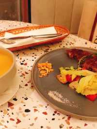Address: No. 100, Section 2, Jingmao 3rd Road, Beitun District, Taichung City Atmosphere/Facilities: Elegant two-story restaurant Features: Creative Eurasian cuisine and bistro Price per person: NT$800 Located in the Shuinan Economic and Trade Zone, this is an exquisite white two-story restaurant! From the exterior to the lobby, you'll often see women taking photos here on weekends! Entering the restaurant, you'll find a vast expanse of pure white dining space! It feels bright and comfortable! Judging by the menu, it seems to be a French-Italian creative cuisine restaurant! The signature volcano cheese bread is all-you-can-eat! The bread is a bit dry and soft, and it doesn't go well with the cheese dip! We ordered the Yujiangchuan Spicy Preserved Egg and Chicken Pasta and the Filet Mignon! The steak was dry and tough and hard to chew! The pasta had a unique flavor, with hints of spiciness and preserved egg. Actually, I can't tell if it has anything to do with the spicy chicken! In summary, the pasta was quite good, except for the fact that the pasta was a bit too cold. But seeing the names of the dishes doesn't always tell me what I'm eating! #LocalTour #Taichung #Pasta