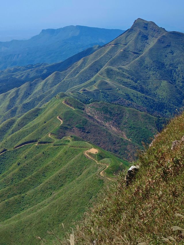 I came to Guangxi during the National Day holiday and wanted to hike in Jianlong Mountain, but I was told the mountain was closed the day before departure! ! ! I was very depressed. My previous plan to go to Antarctica was also blocked, so I quickly changed my itinerary and chose Dasheng Mountain between Wangzhouding and Dasheng Mountain. I feel that this decision was the right one. Wugong Mountain is already very popular. I have been there before. Before coming to Dasheng Mountain, I was worried whether the scenery would be the same. I can say with certainty that the scenery is really similar, haha! But what’s even better about Dasheng Mountain is its original ecology, with not many people. The last section of the climb to the top of Dasheng Mountain through the short bamboo forest and the rock formation is quite exciting and wild! ⛰**Introduction to hiking route**: The navigation is located at Ouyang Village ➡️Xiaosheng Mountain ➡️Zhenlongshan Fozi Society ➡️Dasheng Mountain Top ➡️Zhenlongshan Fozi Society ➡️Zhongtang Reservoir. This route is a crossing route and is not very friendly to self-driving. Self-driving people can only return by the original route, and there is no loop route. The whole road is on the ridge, it is very sunny and of medium difficulty, so be sure to avoid slipping. Hiking distance: 13.6 km Hiking time: 6 hours and 15 minutes Total climb: 831 meters 👣【Hiking scenery introduction】 The whole mountain is basically a meadow, with a prairie feeling. The wind blows the grass and rustles, which is very healing! The low mountains in the distance are the characteristic of Guangxi, very beautiful. On the way down the mountain, you will encounter neatly arranged eucalyptus trees, which are as beautiful as fireworks in the sunset. 🚗【Traffic Tips】 You can drive directly to Zhongtang Reservoir or Ouyang Village. It is recommended to sign up for a hiking tour in Nanning. 👀 Travel Tips: ✅ Sun protection, sun protection, the whole route is very hot, so be sure to pay attention to sun protection. ✅ There are no supply points along the entire road, so it is best to bring four bottles of water and food. ✅ There are a lot of gravel on the way to the top, which is very slippery. Comfortable hiking shoes are a must. Many people fall easily when wearing slippers or non-slip shoes. Come to my homepage and discover more exciting trips that you can take at any time! 🚀More beautiful routes are waiting for you to explore! 👋
