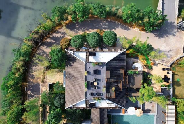 Beyond the hustle and bustle of the city lies a sanctuary for the soul. Viewed from above, the homestay is built along the water, with its blue-gray walls and black tiles blending seamlessly with the emerald waters and green trees, resembling an impressionistic Chinese ink painting. Stepping inside, the interior decor exudes refinement, with antique furniture paired with artistic ornaments and soft lighting creating a tranquil atmosphere. Whether resting in the guest rooms or lounging in the common areas, you can immerse yourself in the charm of Chinese aesthetics. If you wish to escape the city's chaos, come to Xueqingji Shanshi Qinglan Homestay, where you can sleep by the water and savor the slow passage of time.