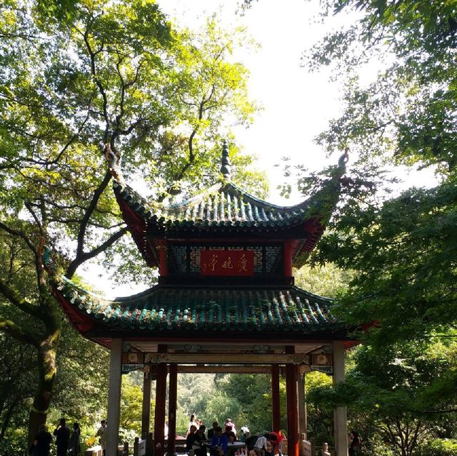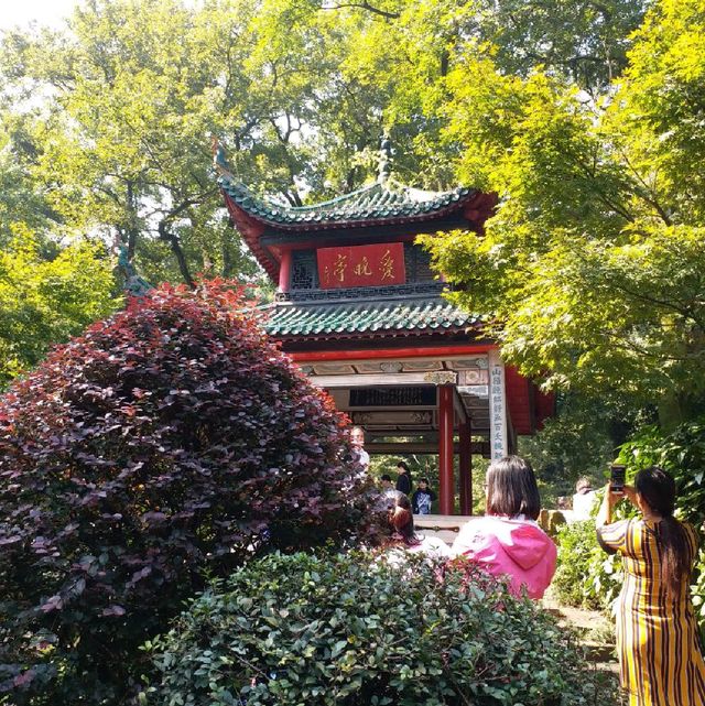 #Mainland China Attractions Aiwan Pavilion is located in Qingfeng Gorge, Yuelu Mountain, Yuelu District, Changsha City, Hunan Province. It is known as one of the "Four Famous Pavilions in China" along with Zuiweng Pavilion in Anhui Province, Huxin Pavilion in Hangzhou City, and Taoran Pavilion in Beijing City. I remember the line "Stop the car and sit to enjoy the maple forest in the evening" in the poem "Mountain Travel", which was left by Du Mu when he passed by this place. This time, after passing Yuelu Academy, I came to the Aiwan Pavilion while admiring the garden scenery along the way. I saw a small amount of maple leaves this time, which was worth the trip. The Aiwan Pavilion has double eaves, eight pillars, glazed green tiles, and flying corners. From a distance it looks like it is leaping into the sky. The inner pillars are painted red, and the outer pillars are made of granite, making it very stable. The author of the title is none other than Chairman Mao, the founding father of the People's Republic of China. The surrounding scenery is pleasant and the trees are lush. Sit in the Aiwan Pavilion and enjoy this moment of leisure.