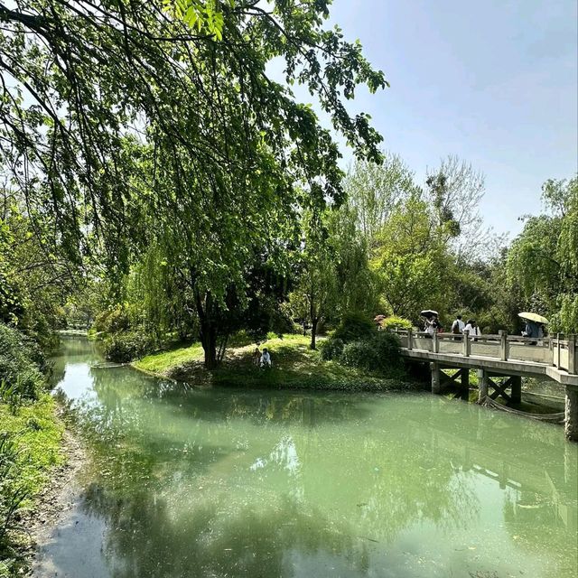 #ChengduTravel Review of Du Fu Thatched Cottage and Huanhuaxi Park, Chengdu When it comes to cultural tourism in Chengdu, one must-see is Du Fu Thatched Cottage (杜甫草堂), a replica residence of the Tang Dynasty poet Du Fu. Built to commemorate the poet's work and life, the cottage evokes a tranquil and shady atmosphere. Surrounded by wooden houses, ancient pavilions, and exquisitely landscaped Chinese gardens, it's like stepping back in time to the Tang Dynasty. The exhibition area features archives, artwork, Chinese characters, and literary exhibitions, allowing visitors to explore Du Fu's poetry in a deeper light. These poems, particularly those reflecting the hardships and concerns of the nation, continue to touch the hearts of people centuries ago. Continuing beyond the cottage, you'll find Huanhuaxi Park (浣花溪公园), a large park with a small stream, arched bridges, and walking paths amidst the trees. Nature lovers will be captivated by this place, where you can relax, take a slow walk, or even sip tea in the pavilion by the water to fully absorb the tranquility. This place is also a great spot for viewing flowers and birds, creating a romantic and relaxing atmosphere. The appeal of visiting these two places simultaneously is experiencing both "cultural heritage" and "nature" in one place. From the Poet's Cottage to the Stream Garden, it's a journey that fulfills both the senses and the soul. ✨ We recommend allowing at least half a day for this visit, as the atmosphere is so beautiful you won't want to rush. Highly recommended. 🚇 How to get to Du Fu Thatched Cottage & Huanhuaxi Park 📍 These two places are right next to each other (Huanhuaxi Park is located south of Du Fu Thatched Cottage), so you can visit both at the same place. 1. Metro Take Line 4 to Caotang Road North Station (草堂北路站). Exit C and walk for about 15–20 minutes to reach the entrance of Du Fu Thatched Cottage. 2. Bus Several lines pass through: 19, 35, 58, 82, and 151. Get off at the Dufu Thatched Cottage (杜甫草堂) stop. It's just a few minutes' walk from the stop. 3. Taxi or Didi (a Chinese ride-hailing app) The most convenient way to get there is by taxi if you're traveling with a large group. The journey from Chunxi Road (中心商圈, Chengdu's main shopping street) takes about 20–25 minutes and costs around 25–35 yuan.