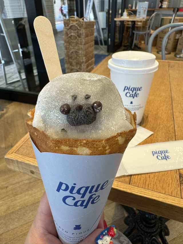🦭gelato pique cafe Mitsui Outlet Park Makuhari Branch 📍Kaihin Makuhari, Chiba (1-minute walk from Kaihin Makuhari Station) This time, I ordered: ・Sealicious Black Sesame Crepe (1,240 yen) ・Ginger Peach Tea (490 yen) 📝 There's no Gelato Pique Cafe nearby, so I finally went there to try this seal crepe.🦭💗 First of all, I was blown away by how adorable it looks.✨️ The seal's face is made of black sesame gelato wrapped in gyuhi (rice cake) dough. It's chewy, cool, and delicious.💕 Inside is a sweet and salty mitarashi sauce and mellow rare cheese cream. And even fresh strawberries.🍓 The combination of Japanese and Western flavors is exquisitely balanced. It feels like you're discovering new flavors with every bite. It was a crepe I could enjoy from start to finish. ◎ The ginger peach tea I ordered with it was refreshing with a subtle ginger flavor and a subtly sweet taste. It paired perfectly with the rich crepe. 🍑 ✍️️Unfortunately, this seasonal menu is currently discontinued, but Gelato Pique Cafe's limited-time menu items are always so cute and appealing. ☺️ I'm so sad that the Namba store is gone... I hope they open another one in Osaka. ✨ . . . . 📌 2-6-1 Hibino, Mihama-ku, Chiba City, Chiba Prefecture Mitsui Outlet Park Makuhari 1F ⏱ 10:00-20:00 🗓 Irregular holidays . . . . #GelatoPiqueCafe #ChibaCafe #SweetsTour #ChibaGourmet #Crepe #MakuhariSeasideGourmet #ChibaTrip #ChibaSightseeing #SummerCampaign