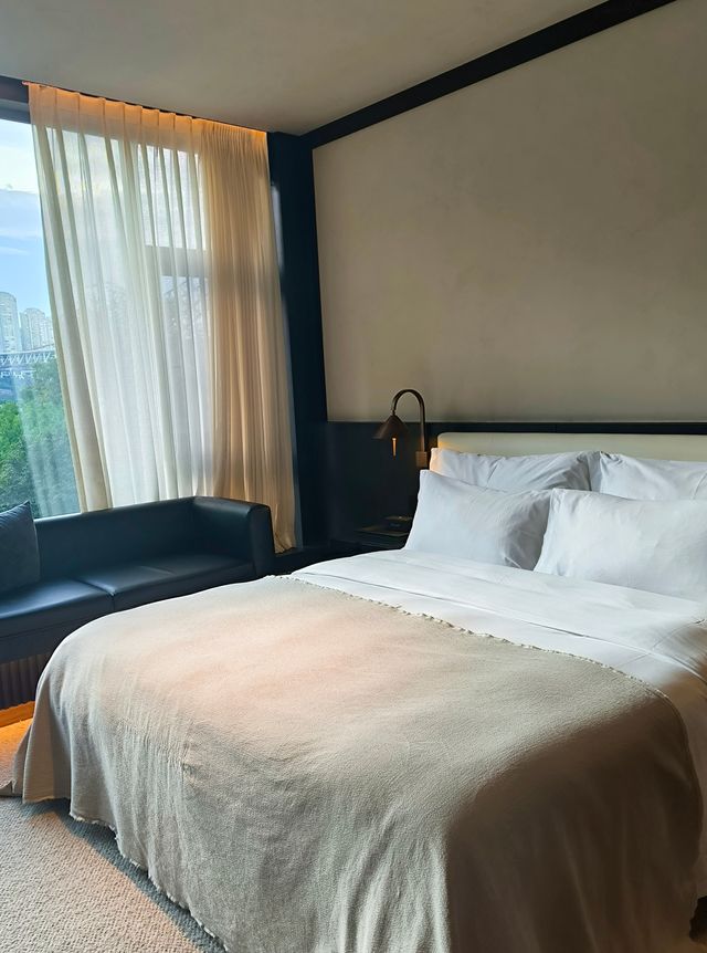 📍Location Guide: No. 69 Taichang Road, Danzishi Street, Changjiahui Phase 1, Building 4, Unit 1-1 🚗Super convenient transportation - 5 min walk to Danzishi Old Street - 25 min direct to Hongya Cave - Right next to Changjiahui Shopping Plaza A perfect quiet spot in the bustling city👍 🏨Dreamy Rooms: I was amazed the moment I opened the door! ➡️Extra-large panoramic floor-to-ceiling windows capture the Yangtze River and mountain city views ➡️Wabi-sabi style with vintage design, very textured ➡️Dyson hairdryer + capsule coffee machine, so luxurious Lie on the big bed and watch the clouds roll by ☁️ 🥞Gourmet Feast: Breakfast so rich it’ll support you all day! ✨Freshly ground soy milk, rich and mellow ✨Goodnight sweet soup with just the right sweetness ✨Exquisite afternoon tea, perfect for photos 🌿Environmental Perks: Surrounded by lush greenery in a stunning setting Wake up to birdsong in the morning🐦 Enjoy the river view and city lights quietly on the terrace at night🏙️ Every snap is a masterpiece! 💝Special Services: 24-hour attentive butler service Luggage delivered to your room Warm turndown service Truly a divine stay experience😍