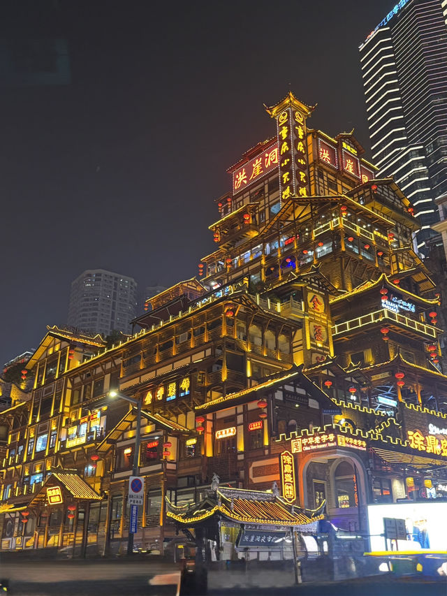 ✨Dazzling Nights at Hongya Cave: Chongqing’s Neon Wonderland🌃🛶 Hongya Cave lights up every evening, transforming into a mesmerizing riverside labyrinth that’s a feast for photographers, foodies, and night lovers. Imagine wandering ancient-style streets aglow with neon, overlooking the Jialing River’s sparkling reflections—perfect for soaking up Chongqing’s electrifying city spirit! 🗺️ Recommended Route: Enter from the upper Binjiang Road entrance; stroll down winding corridors packed with local snack stalls. Don’t miss heading towards the lower riverside platform for sweeping city and water views. Explore upwards through the terraced levels to see both the architectural details and peek inside quirky shops. 🔥 Must-Do Experiences: Taste spicy stinky tofu and skewers, browse for handmade souvenirs, and watch nighttime performances if you catch a pop-up show. Don’t forget to try Chongqing hotpot if you spot a riverside eatery—it’s an authentic city must! 📸 Top Insta-worthy Photo Spots: 1. Standing at the riverside entrance with neon-lit buildings behind you 2. Overlooking the illuminated cave layers from the public terrace—best after sunset 3. Lantern-lit stairways winding through the heart of Hongya Cave 🕒 Practical Tips & Precautions: - Aim for 7:30–9:30 pm for peak “lights in the night”—the colors are unreal! - Can get crowded; hold onto valuables and watch stairs (surprisingly narrow & slippery!) - Public bathrooms are available at Level 4 and Level 8—use them before it gets too busy - Metro Line 2 stops nearby; avoid driving due to traffic congestion #Chongqing #HongyaCave #NightLife #NeonCity #TravelTips