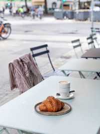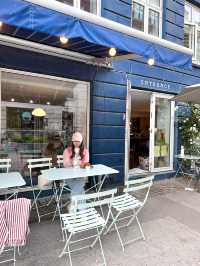 Dalsis, which I visited on a cloudy afternoon, had a blue wall that stood out from afar, and a wall with roses in bloom, making it a lovely place from the outside. The outside, with its light mint-colored tables, had a simple feel, and the inside had a cozy and relaxed atmosphere that we think of when we hear the words Denmark or Scandinavia. The bread I wanted to eat was sold out, but thanks to the friendly service that recommended various things and explained the coffee in detail, I was able to spend a pleasant afternoon. If I go to Denmark again, I definitely want to go there again. 🚗 Rantzausgade 2, 2200 København N ⏰ Mon-Fri 07:30-17:00, Sat-Sun 09:00-14:30 #EuropeanTravel #DenmarkTravel #CopenhagenTravel