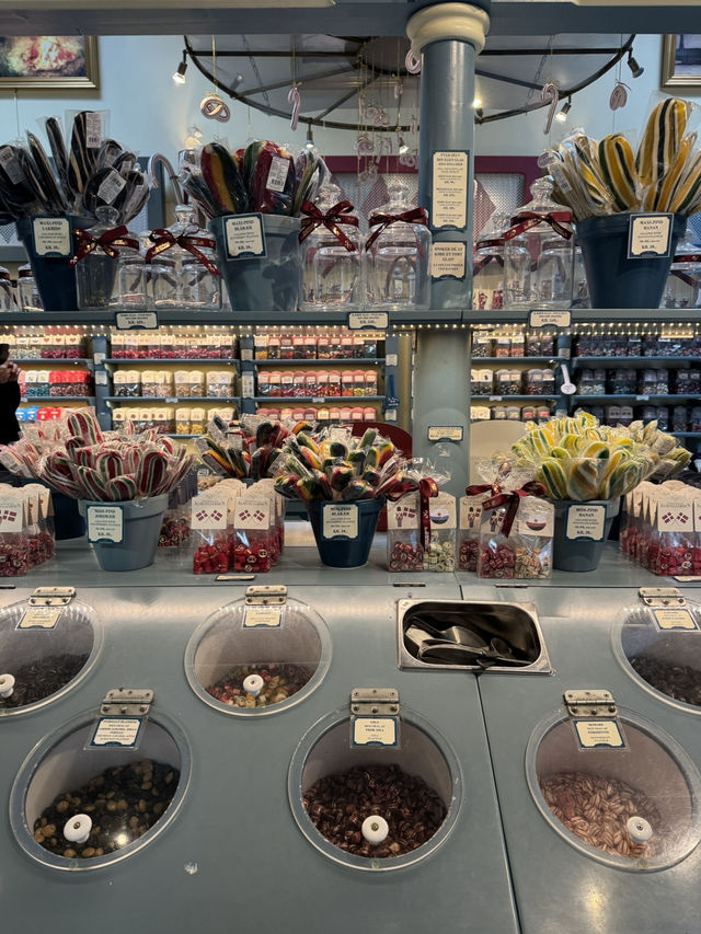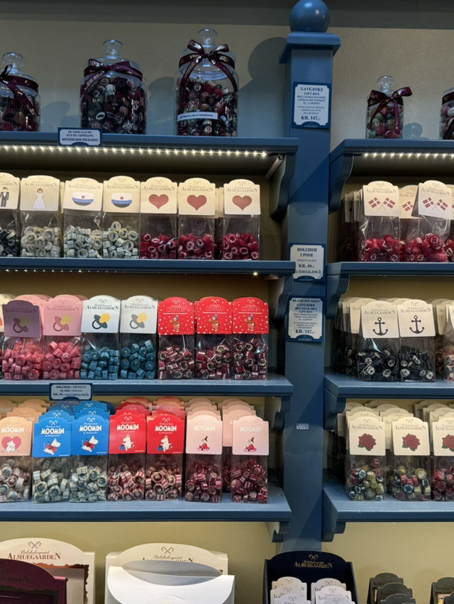 The candy store "Bolchekogeriet Almuegaarden" in Tivoli Gardens is so charming, it feels like you've wandered into a fairytale world. You can watch the candy being made through the glass, and the artisans' dexterity is captivating. The store is lined with colorful candies, and the diverse flavors, including fruit and mint, make choosing a candy a joyous experience. The charming retro packaging makes them perfect souvenirs. This is a special spot, filled with sweet aromas and a sense of excitement. 📍Bernstorffsgade 9, 1577 København, Denmark #TravelWithPochikatsu