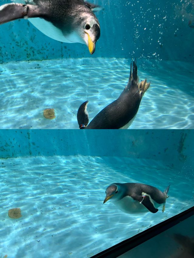 Come see the penguins at Sun Asia! 🐧 They are just too adorable! The chubby little ones waddle around, and a few are lazily lying on the ground, round and plump like little rubber balls!!! It feels like they eat better than I do~🍣 Super useful tips: 🕒 Opening hours: 9:00 AM - 5:00 PM (last entry at 4:30 PM) 📍 Address: No. 608-6-8 Zhongshan Road, Shahekou District, Dalian (near Xinghai Square) 💰 Discounts: Buying tickets online in advance is more cost-effective! 🎯 Suggestion: Be sure to come early! I entered at 9 AM and hardly had to wait in line~ by noon, it gets crowded 😝 🛍️ Shopping alert: Each pavilion has its own exclusive cultural and creative store! I heard many designs are original to Sun Asia~ from fridge magnets to keychains, everything is exquisitely crafted💥 The best part is there are exclusive discounts on cultural products inside!!! The penguin plush toys are so cute you’ll want to take one home on the spot ❤️🔥 📸 Photo guide: 1️⃣ For the penguin area, shooting from above is recommended to capture more penguins 2️⃣ Taking selfies against the glass wall can get you perfect reflections 3️⃣ Penguin feeding time is the golden moment for photos
