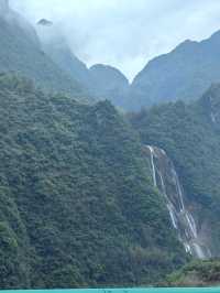 The Dripping Waterfall is located 6 kilometers west of the Huangguoshu Waterfall, within the territory of Guanling County, about 4 kilometers north of Guanling County town, on the cliff of the west bank of the Baling River, east of Jiwo Tian Village. It faces Weixi Village on the east bank of the Baling River, and the best viewing point is about 1 kilometer south of Weixi Village at the observation deck. Recommended route: Take the Shanghai-Kunming Expressway G60 to the Huangguoshu toll station, turn right and follow the Guizhou-Huang Highway southwest. At the three-way junction, take the left road, turn left and continue along the Guizhou-Huang Highway, first heading south, then west along the road, passing Xiaopo Village to the east bank of the Baling River. Then leave the Guizhou-Huang Highway, take the township and village roads, and proceed about 4 kilometers north along the east bank of the Baling River to reach the observation deck. The waterfall has a total height of 410 meters, six times that of the Huangguoshu Waterfall, with the lowest layer being 130 meters, majestic and imposing. Standing on the top of the slope and looking at the entire waterfall, it resembles a celestial being dressed in a white skirt, revealing her figure amidst the vast cold greenery. Atop the mountain is the Buoyi ethnic village of Jiwo Tian, with its orderly and beautiful scenery, and 2 kilometers away from the village is a multi-level waterfall group (Dripping Waterfall). The beautiful countryside, tiered waterfalls, and the elegant and tranquil Buoyi village compose a beautiful pastoral landscape painting. The Dripping Waterfall hangs on the mountain of Guansuo Ridge, consisting of three large waterfalls and dozens of medium and small waterfalls. The upper part is the Sky-reaching Waterfall (5 kilometers from Guanling County town), the middle is the Chongkeng Waterfall, and the lower is the Gaotan Waterfall. It embodies many features such as height, size, quantity, beauty, and wonder, leading in both total height and individual size among the Huangguoshu Waterfall group. Here, two mountains stand opposite each other, with Dapo Top to the east and Guansuo Ridge to the west, and in between is the 700-meter-deep Baling River Canyon.