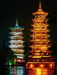 A must-visit for night tours in Guilin! The Sun and Moon Twin Towers are breathtakingly beautiful