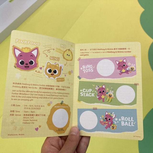 ## Easter Good Places #play games #exchange gifts #do charity During Easter, the popular Korean cartoon Pinkfong changed into a bunny🐰 and brought new member Ninimo to HarborCity to meet you😍. The new member Ninimo is a fusion of yellow cat Nini and Mo who has been sleeping on Nini's head. They are Pinkfong's inseparable best friends. 🥰 "Pinkfong & Ninimo Funfair" will open 3️⃣ parent-child booth games in the atrium of the Maritime Building, display 2️⃣ photo spots, and open a "Pinkfong & Ninimo Temporary Store". Donate HK$20 to redeem game cards to participate in the game🤩 3️⃣ Big booth games include Ring Toss, Cup Stack and Roll Ball. After successfully challenging the game, you can get a ✅ stamp on the game card. All proceeds from the game card 💰 will be donated to the Make-A-Wish Hong Kong Wish Come True Fund to help sick children realize their wishes 3️⃣ The little game is not difficult, the piggy pack can all be easily completed ✅, successfully got the number card and stickers, very happy 🥳 In addition to booth games, there will also be a giant LED screen that will play various cute and funny interactive short films 📹 from Pinkfong and Ninimo In addition, the Pinkfong & Ninimo Funfair also has a temporary store selling a variety of limited edition Pinkfong and Ninimo and other cartoon character peripherals, all of which are officially available in Hong Kong for the first time. If you go to Tsim Sha Tsui, you might as well bring your children to take pictures, play games and do charity 😊 📮Location: Ground Floor Atrium of Maritime Terminal #ParentFunFun #ParentFunFun #ParentFun #HolidayFun #HarborCity #MarineBuilding #Harbourcity #Tsim Sha Tsui #pingfong #Ninimo #BoothGame #TemporaryStore #makeawish #WishFulfillmentFund #Full-TimeMom #4y6m #PigBag'sHappyDaily