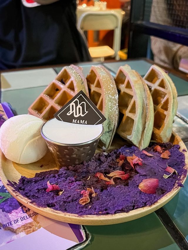 My favorite restaurant has a new one, of course I can’t miss it and have to try it‼ ️🙌🏻 ▫️ ❥$𝟮𝟲𝟴 Sea Dragon Pizza🍕 Lobster meat cut into pieces and spread all over ᴘɪᴢᴢᴀ‼ ️There are also mussels and scallops, which are sweet and tasty‼ ️😙 The crispy crust is filled with a lot of cheese and Thousand Island dressing, it’s very delicious‼ ️👅 ▫️ ❥$𝟭𝟱𝟴 French Spicy Green Onion Chicken🔥 The pot is piled high with garlic, onions, potatoes and large pieces of chicken‼ ️The more the sauce cooks, the spicier it gets, just like eating chicken pot‼ ️🌶️ The hot chicken tastes pretty good‼ ️👍🏻 Corn flakes dipped in rich sauce, crispy and delicious‼ ️😋 ▫️ ❥$𝟭𝟯𝟱 Very spicy Thai style pork udon🍜 Usually I am used to eating pasta, but the udon I chose this time was also a surprise‼ ️👏🏻 The udon is so springy and refreshing, mixed with the tataki pork, every bite has a slightly spicy flavor and charming spice flavor‼ ️🌶️ ▫️ ❥$𝟵𝟬 Purple Sweet Potato Waffles🧇 The restaurant's waffles are recommended and must be tried‼ ️🤩 Different from other places, the waffles here are very chewy, giving the illusion of mochi in between‼ ️🤭 The waffles are stuffed with purple sweet potato, covered with milk cap and topped with ice cream, very delicious‼ ️❤️ There is also a lot of purple sweet potato puree on the side dish, love it‼ ️😍😍 ▫️ ▫️ ◦ ---------------------------------- ◦ 📍Mamaday OMG Mamaday 🔍2/F, Suncity Commercial Centre, 29 Granville Road, Tsim Sha Tsui ◦ ---------------------------------- ◦