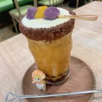 #HongKongGoodSpots #hkfoodie Cha Mu - Taiwanese Casual Restaurant (Tsuen Wan) Shops G60, 62 & 79, G/F, Citywalk, 1 Yeung Uk Road, Tsuen Wan Golden Diamond Pineapple Rolls, Pan-Seared Sirloin with Wild Mushroom Quinoa The golden brown color and the aroma of the pineapple roll and sirloin steak blend together to create a mouth-watering experience. The subtle aroma of the wild mushroom quinoa complements the rich texture of the steak, making the entire dish even more delicious. Caramel Chestnut Latte (Iced) Lightly Sweet and Icy Dark brown in color, with caramel and chestnut flavors, it's mouth-watering at first glance. The aroma of coffee blends with the richness of milk, creating a smooth texture that exudes a leisurely atmosphere. (Snack) Golden Crispy Chicken Golden and crispy, deep-fried to a crispy exterior and tender yet juicy interior, it's a truly delicious dish. (Snack) Boiled Egg The egg is slightly charred on the outside, and when cut open, the yolk oozes out, creating a mouth-watering orange-yellow color. The egg white is dense and soft, paired with the runny yolk for a delicious flavor. (Snack) Black Sesame Oil Chicken Wings (2 pieces) Roasted until fragrant, the black sesame oil and spices enhance the flavor, resulting in a crispy exterior and juicy interior. Taiwanese Milk Tea Jelly The light tea color and tea jelly create a refreshing and delicious treat, perfect for cooling off in the summer. Wasabi Pineapple Shrimp Balls The vibrant colors, a blend of red, yellow, and green, complement the spicy mustard sauce and the sweet pineapple, creating a delicious and fresh taste. The medium-curled vermicelli noodles are rich in ingredients and have a smooth texture. Teawood Pineapple Cake (2 pieces) Golden in color, with a crispy crust on the outside and a flaky pineapple filling, this is Teawood's signature Taiwanese casual restaurant. Crispy Brown Sugar Waterfall Pearl Milk Tea (Iced) - Lightly sweet and ice-free The aroma of brown sugar and the chewy texture of pearls blend together for a delicious treat. Chocolate Cookie Honey Bricks 🧱 The texture is soft and fluffy, while the rich chocolate aroma and sweetness are truly irresistible.