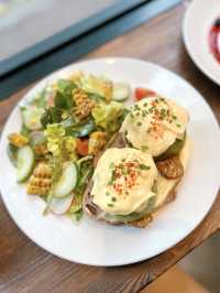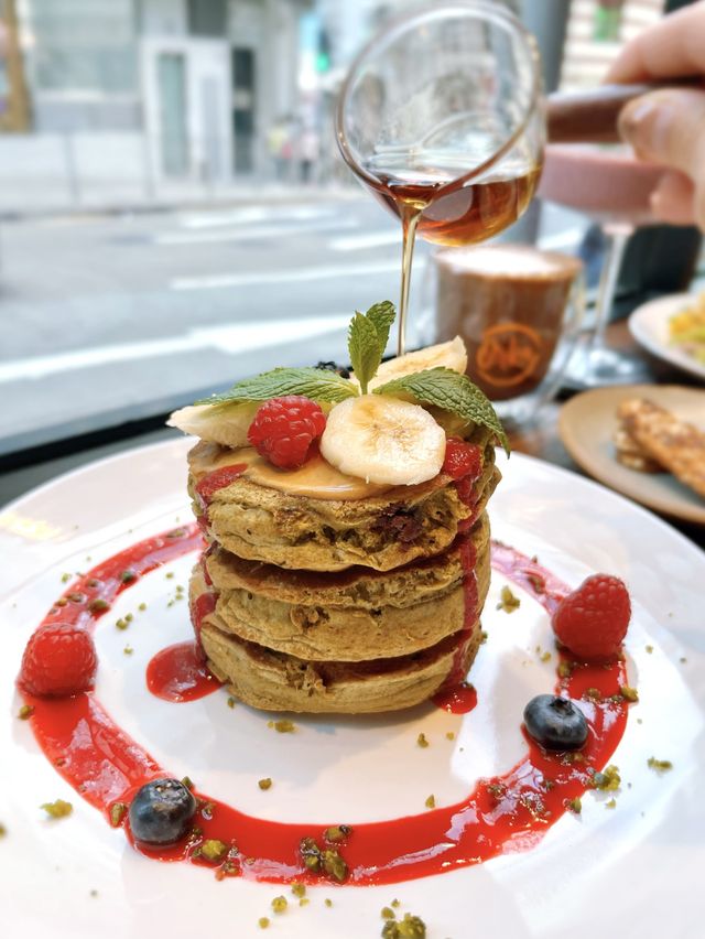 Located in Central, 🔸Orka Restaurant & Specialty Cafe🔸 offers a wide range of vegan, gluten free, vegetarian and non-vegetarian dishes. Matcha Zen Pancakes $118 Pancake texture is very moist, matcha flavor🍵pancake blended with chocolate chips, each layer then coated with peanut butter🥜, this combination is quite special. Served with the sweet and sour taste of cranberry sauce🔴, banana slices🍌, honey🍯, etc., the taste is very rich. Vegan Avo Benedict $128 Once it was served, it felt healthy and rich. The sourdough bread is quite chewy, the avocado is beautiful, melting in the mouth 🥑☺️ The top layer is served with smooth vegan hollandaise sauce, and some chili powder. There is a choice of bacon or vegan bacon. When I heard that there is a vegan bacon option, I chose to try it. The taste is a little smoky, made of some shell wheat 🌾 ingredients, quite special. Another salad 🥗 added vinegar and olive oil, appetizing and refreshing. The corn has been roasted a little, very sweet😋 Smoothies: Brain Sharpner $78 There are acai berries, blueberries, strawberries, buttercup flowers, cinnamon and cardamom, mixed with palm sugar and oat milk. The liking is not too sweet, has a fruity aroma, and with oat milk, it feels very light and fresh. Coffee: Mocha $45 The flavors are rich and balanced, the chocolate flavor is prominent, the coffee is not bitter, the milk is smooth, and the latte art is beautiful. ——————————————————————————— 📍Orka Restaurant & Specialty Cafe Address: G/F, 36 Wenham Street, Central ——————————————————————————— #orka #orkarestaurantandspecialtycafe #central #vegan #glutenfree #vegetarian #nonvegetarian #veganmenu #hkrestaurant #restauranthk #foodphotography #hkfoodphotography #hkfoodlover #hkfoodblogger #restaurantreview