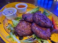 This bar and restaurant is located on the ground floor of Tung Chung Seawall Bayside, once out of Tung Chung MTR Station Exit C is East Point City, take the escalator and walk the footbridge to reach, dinner time around 7, the venue sat many diners and wine customers The staff was very friendly and smiled at us, so we decided to dine here, there are many foreigners in the venue, it feels like traveling, comfortable seats, many paintings hanging on the wall, very modern decoration, feel a bit like Tsim Sha Tsui's bar street. Food called Roasted Chicken (Half) Grilled chicken (half portion) $180, Lamb Kofta lamb meatballs $145 and Angus Beef Burger Angus Beef Burger $175, food quickly served, the first served was lamb meatballs, at first thought it was wrong, because lamb meatballs thought it was a grain😂, but the Internet search turned out to be can be made into different shapes according to the preferences of different cooks😮 Must like, because it is like to eat lamb has its unique taste, meat soft and hard moderately juicy, with the plate there are two sauces can order, orange is garlic 🧄 sauce spicy, like to eat spicy things people can try, I prefer another milky white sesame sauce, because the lamb itself has a little spicy, plus orange spicy sauce feels like a bit Grab the taste, so order milky white sesame sauce I think just right, with the lamb meatballs also attached a piece of Indian toast naan, can wrap the meat together, two ways of eating , carnivores must order, bite meat, meat is not tough, after eating must be very satisfied. Service is quite good, staff passing by to see our table seems to put food to put a bit crowded, so took the initiative to help us take away the table menu 👍🏻, overall good, see a stage in the venue, put musical instruments, next time to chill, listen to live band first come first served. @atavolabar #hiddenbar #chillburst #tungchung #atavola #steakhouse #bar #steakhouse #winebar #liveband #musicshow #chillout #drinks #beer #lamb #burger #burger #french fries #specialty #gathering #chicken #ハンバーガー #fries #フライドポテト #igable