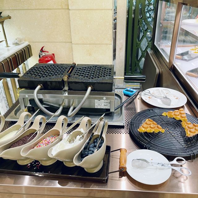 Address - Alexander Restaurant (North Point) Lobby Floor, Alexander Hotel, 32 City Garden Road, North Point Environment/Facilities - Beautifully decorated, gorgeous palatial design Features - Beautiful environment Price per person - $390 Rating - 7/10 Recently, a group of five people celebrated their birthday with a holiday lunch buffet, our first time here, the entrance of the hotel is a little difficult to find, it turns out that the floors under the private residence are the hotel. The restaurant is beautifully decorated, the whole palace-style photo spot is there! There were not too many tables of customers that Saturday, not much variety of food, more attractive to us was the grilled bacon, oysters, long leg crab, other dishes were mediocre, the variety was really not much, very few cold plates, not very appealing to my appetite! Red and white wine and beer are all you can drink. This is commendable. You can also drink coffee and tea! We explained beforehand that we were celebrating our birthday, so we gave away a dessert plate. On the eve of Father's Day, the restaurant gave each table a dessert for one man🍮 #hotel restaurant #buffet strategy #photo restaurant #hongkongbuffet #monkeyb recommendation