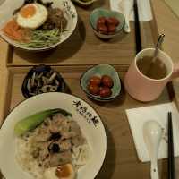 📍Location: Near Tuen Mun Station Exit B, next to the hydroponic farming display. 🏠Environment: Open-style facade, mainly light wood, with sparse seats, one side is by the window of the mall, and the other is near the atrium of the mall, feeling comfortable and quiet. 🤵🏻Service: Order by QR Code, charge one yuan. 🍽️Lunch: Set meal is available, including two snacks and food, the price is about one hundred yuan. 🥢Wagyu🐮Fried sauce noodles🍝 $84 You can choose two types of noodles. My friend and I both like to eat knife-cut noodles, with passion fruit🍅 tomatoes and cold-mixed straw mushrooms. Both snacks are good. The main dishes include 🥒cucumber, 🥕shredded radish, shredded wood ear, wagyu fried sauce and 🍳half-cooked fried egg. There is soy sauce hidden at the bottom of the noodles, so you must mix it before eating. The soy sauce and fried sauce are very fragrant☺️, and it doesn't feel greasy. The noodles are wavy, smooth and soft😋, and it is very refreshing to eat in summer😉. 🍹Roselle tea (less ice) Sour and sweet, appetizing and relieving😝. 🥢Secret sauce🐷Black pork and red onion soy sauce noodles🍝 $90 It also has knife-cut noodles as the base, with half a half-cooked braised egg🥚, Chinese lettuce🥬 and black pork slices mixed with secret spicy sauce🐽. The portion is not large, and the meat slices are very tender☺️. Mix the soy sauce at the bottom of the bowl before eating, which is good. 🍵Golden monk fruit sea coconut (hot) Refreshing and sweet, healthy and nourishing🥳. Laoma noodles 📍Shop 3223 & 3225, 3/F, Tuen Mun Town Plaza, 1 Tuen Shun Street, Tuen Mun #Sign up for hotel tester #Tuen Mun food #hkfoodblogger #local travel #foodie #summer food recommendation #hkfoodie #hkfood #Laoma noodles