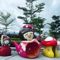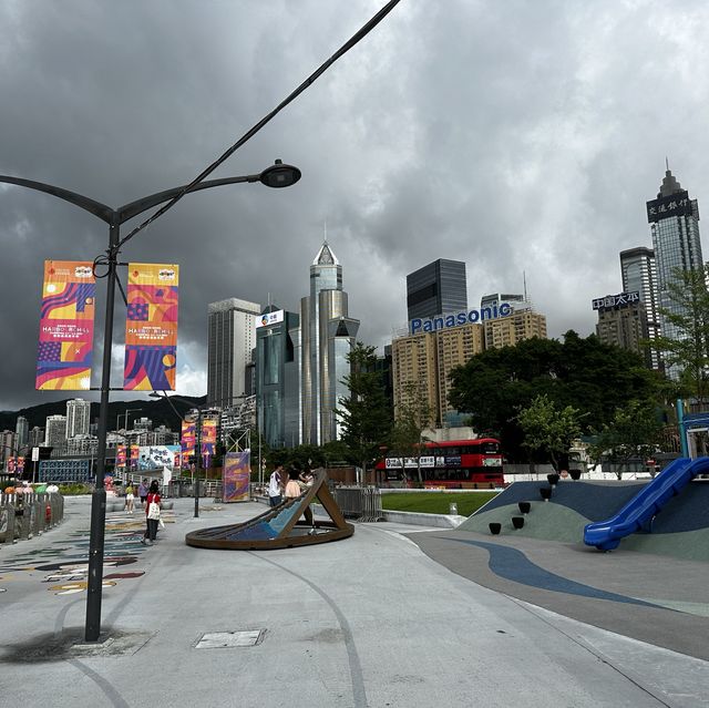 #HongKongGood Places #LocalTour Wanchai Waterfront Park Take a boat from Skyline Pier in Tsim Sha Tsui Get off the boat at Wanchai Pier and you will see this beautiful park directly Lots of heart-warming check-in spots ❤️❤️ There is also an old-style mailbox 📪 wall very characteristic! Also the children's favorite slide shape is very cute! There are few people on weekdays. These days it's cool and the wind is blowing Very suitable for a visit here!